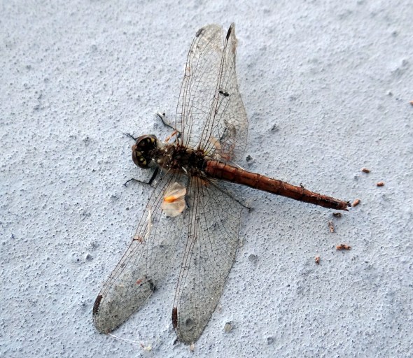 Sneu geval, want aan zijn velugels te zien heeft hij nog niet eens zo gek veel vlieguren achter de rug, maar ja … op is op …