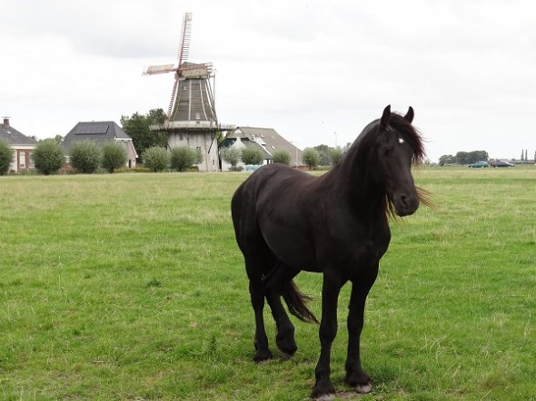 De Klein Wetsinger paardenweide, met op de achtergrond de molen Eureka: