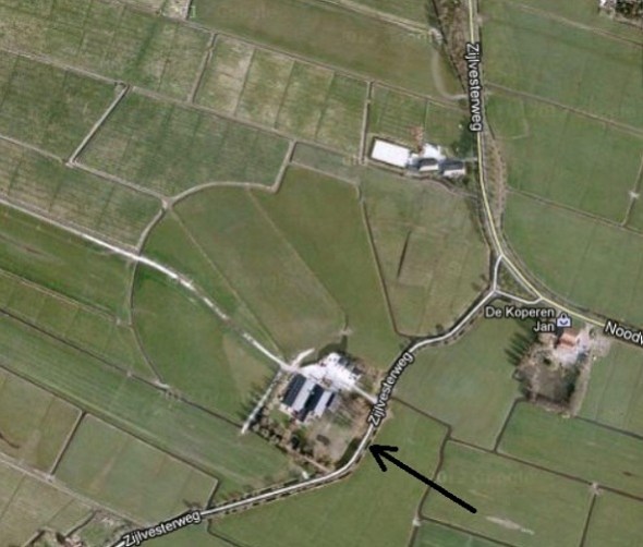 Volgens Kremer liep de Gaaikemadijk ten zuiden van de Friesestraatweg naar het zuiden en zwenkte de dijk bij de Kurrelshoogte.  Vergelijking met latere kaarten levert dan de omgeving op, waar de Noodweg aantakt op de Zijlvesterweg, met iets ten zuidwesten van deze hoek de boerderij Gravenburg:
