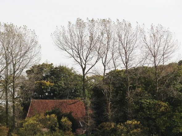 Leegkerk op afstand. De populieren zijn al bijna kaal: