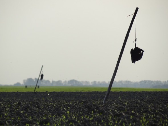 3. Wat hangt er aan die palen aan de Meedenerweg? Een paar oude schoenen aan een touwtje? Dat is kennelijk effectief als vogelverschrikker?