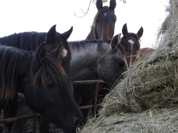 Paarden aan het hooi bij de Noodweg:
