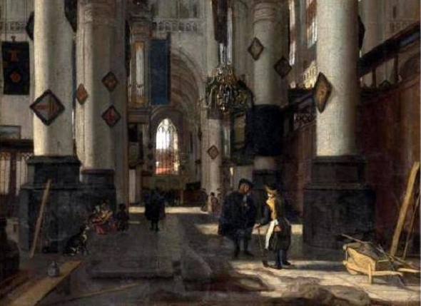 E. de Witte – Kerkinterieur met grafdelver.