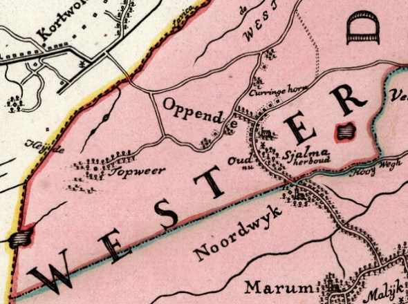 Opende en omgeving op de kaart van Beckeringh (1781).