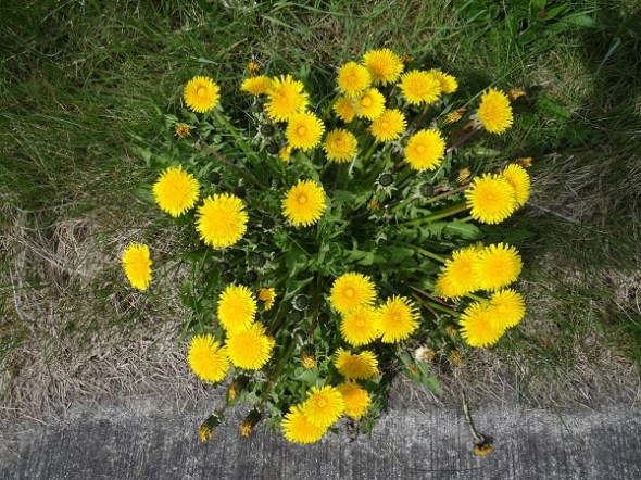 De paardebloemen worden naar het schijnt zeldzaam. Je ziet ze nauwelijks meer in weilanden, alleen nog op bermen en slootwallen. Een mooi tuiltje: