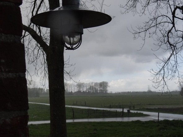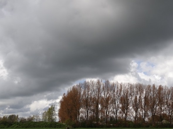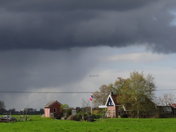 Uit het zuidwesten nadert een tegendraadse bui (de overheersende windrichting was noordwest):