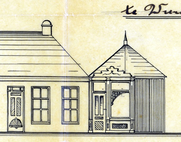 Dat jaar, 1907, was er een verbouwing geweest, waarbij de doorrit er een hoek ruimte bij kreeg ten koste van het winkeltje, dat er echter een aardig puitje voor terugkreeg met een kroon er bovenop en een Jugendstil-krul in het etalageraam: