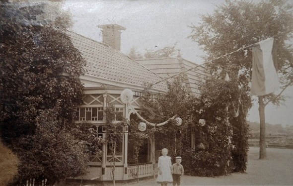 Bij het eeuwfeest 1813-1913 van de bevrijding van het Franse juk stak eigenaar Boerma de nationale vlag uit. Tevens bouwde hij een erepoort met veel groen voor de ingang van zijn veranda, die verder met lampions werd versierd. Boerma’s dochtertje, dan 8 jaar en zoontje, dan 4, poseren voor de veranda, die aan de zijkant niet helemaal lijkt uitgevoerd zoals het bewaard gebleven ontwerp van architect Eldering aangaf: