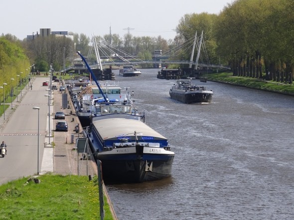 Van Starkenborghkanaal met de Gerrit Krolbrug, gezien vanaf de nieuwe Noordzeebrug: