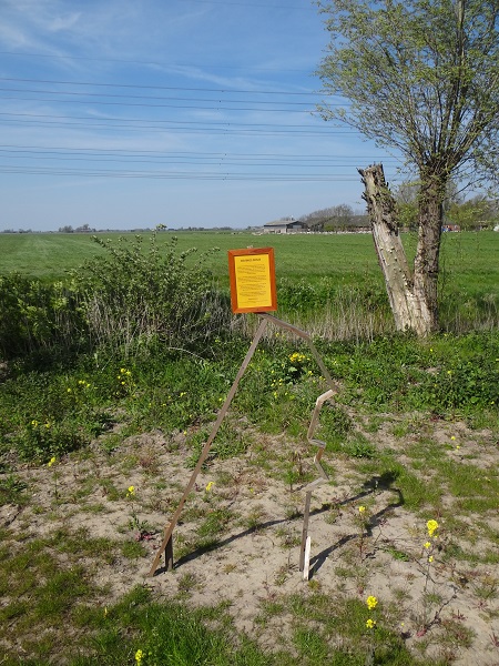 Hier op Ter Laan verdween de eerste woning vanwege de aardgasbevingen. De dorpsvereniging van Bedum wil een lieu de memoire van het verlaten heem maken – het Bevingsbosje. Dat is de teneur van wat er op het bordje staat: