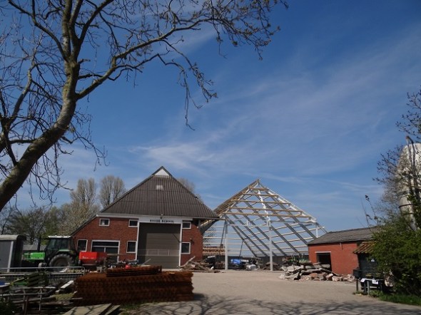Bij boerderij De Roode School , in de Middeleeuwen een voorwerk van het Aduarder klooster, verrees een nieuwe schuur: