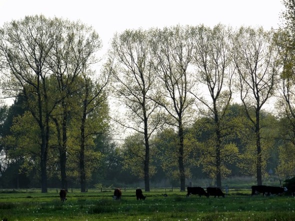 Was de mees aangereden? De foto met de rij populieren in blad is heel mooi, de koeien op de voorgrond, leuk.