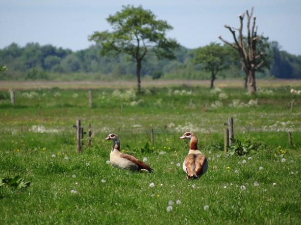 Nijlganzen op een hoog stukje land bij Foxwolde:
