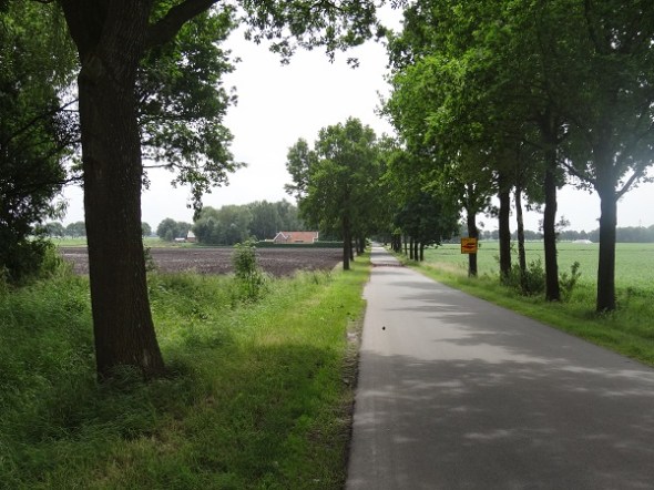 Anders dan verwacht was er in Westerlee geen open kerk – dat kwam door een verbouwing, zoals elders werd gezegd. Dit is de weg van Westerlee naar Oude Pekela. Je ziet hem omlaag lopen – voor 1800 lag hier een van de laatste rauwe veencomplexen, een gebied waar hevig gesmokkeld werd met contrabande (vooral tabak en jenever) uit de Westerwoldse gedeelten van de Pekela:
