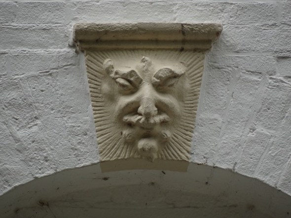 Vlakbij de kerk staat een voormalige school, met boven het portaal deze sluitsteen: