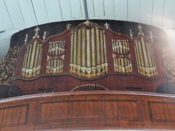 De kerk van Oudeschans heeft een geschilderd nep-orgel: