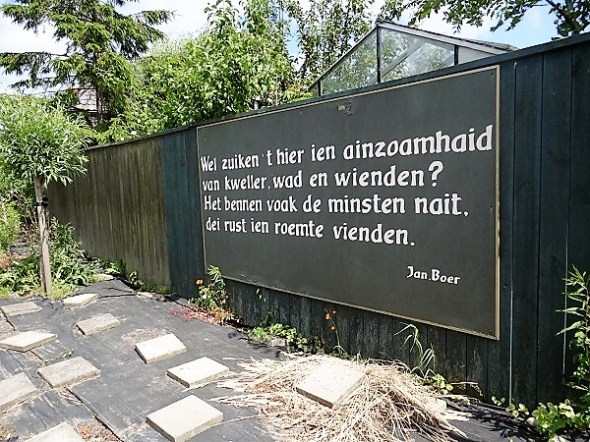 Rottum, ’t Hoeske van Theis Joapke, met linksvoor het borstbeeld van Jan Boer::