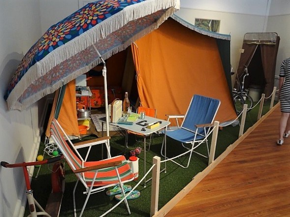 Hotels, pensions, huisjes en groepsreizen blijven (goeddeels) buiten beschouwing, het accent valt duidelijk op het kamperen dat voor het gewone volk mede mogelijk gemaakt werd door het vakantiegeld, dat vanaf 1968 werd uitbetaald. Camping-ameublement uit de jaren 70 – de noppen-vloerbedekking van vinyl komt me heel bekend voor: