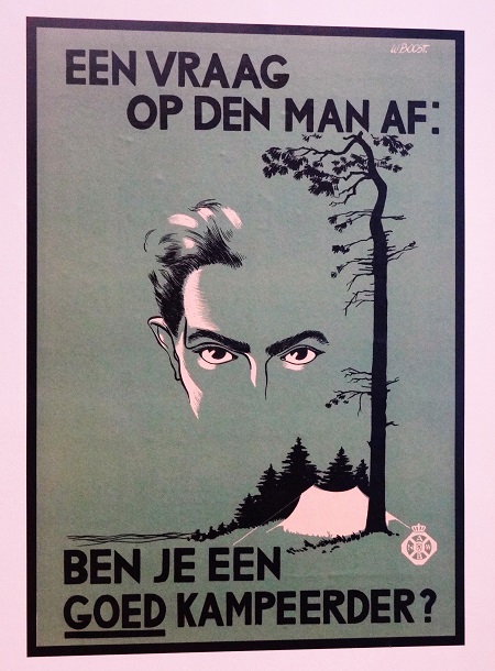Een van de fraaie affiches op de tentoonstelling, stammend uit een tijd dat er nog een waas van idealisme rond het kamperen hing: