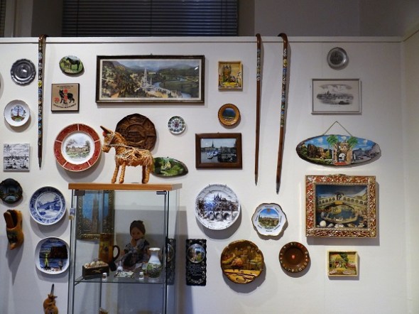 Het is verwonderlijk wat men niet al aan bric-à-brac bewaart – een hele wand is gereserveerd voor historische souvenirs: