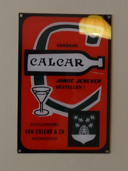 In de belendende veenkoloniale knijp deze fraai vormgegeven reclame van distilleerderdij Van Calcar te Hoogezand: