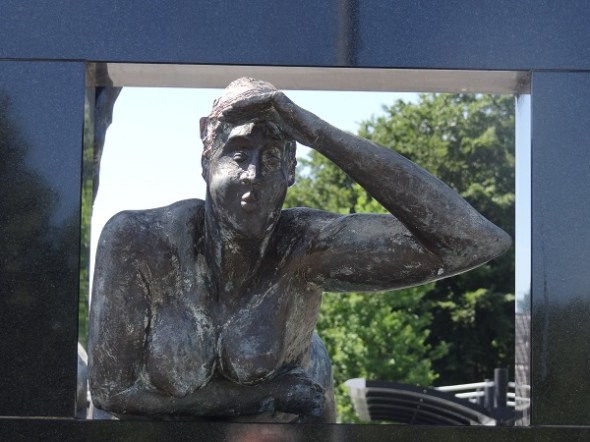 Terug op het station bleek dat de trein pas over een half uur kwam. Beetje rondgekeken – curieus kunstwerk van Limburgse kunstenaar: