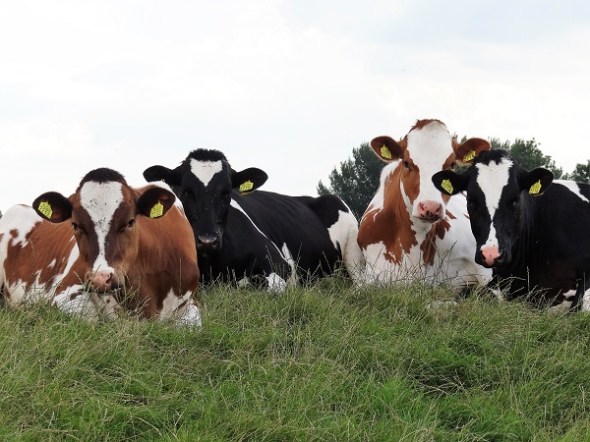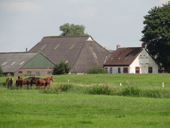 Vier pinken op de dijk tussen Ezinge en Aduarderzijl: