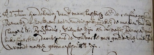 “Overmits bevonden werden veele ledemaeten in die Ghemeijnte J.C. staende int gevoelen, dat menschen en beesten connen worden manslachtich, waertegens sij van dootslaegers selve of door messen derselvne raet soecken. Wordt gevraegt wat van dese saecke sij te houden ende hoe di persoonen daer aen schuldich dienen gecorrigeert te worden.”