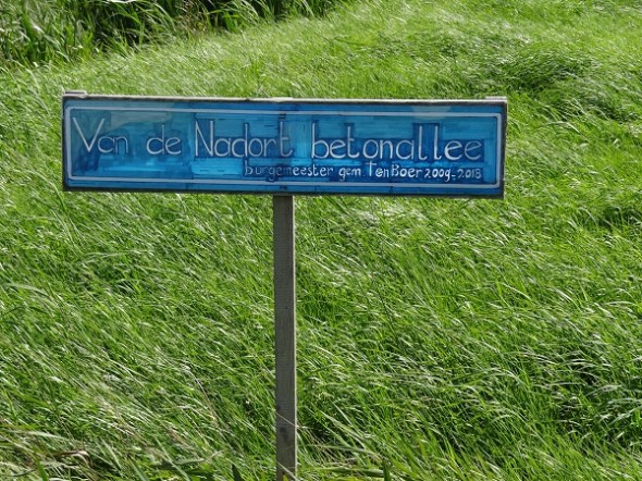 Met een nieuw straatnaambordje bij Garmerwolde – Van de Nadort Betonallee: