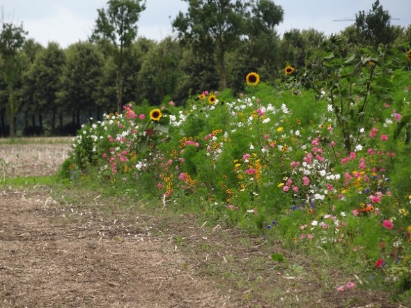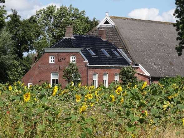 Boerderij met zonnebloemenveld even voor Thesinge: