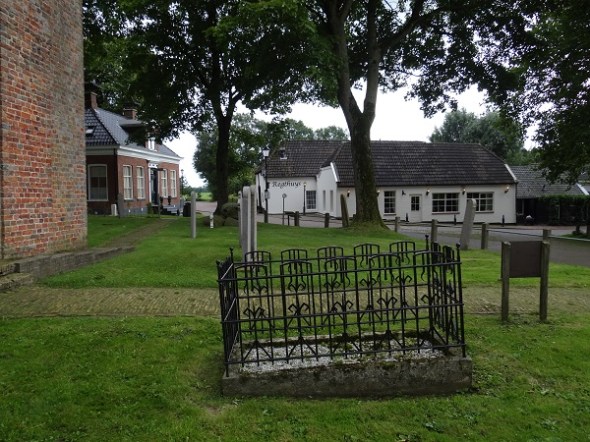 Dorpsgezicht Wirdum met opgeknapt Jugendstil grafhekje: