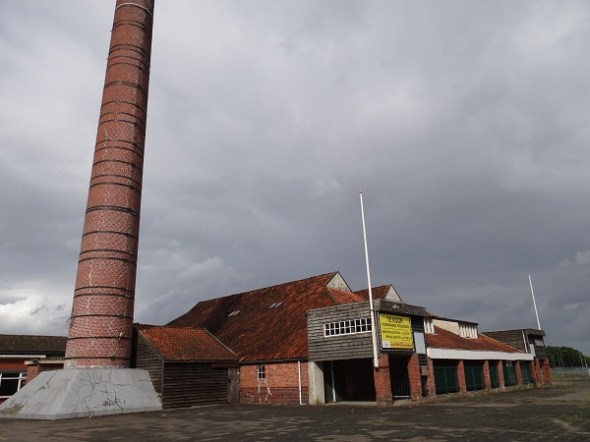 De steenfabriek in Delfzijl net over de grens bij Appingedam staat nog steeds te koop, de schoorsteen is opgeknapt: