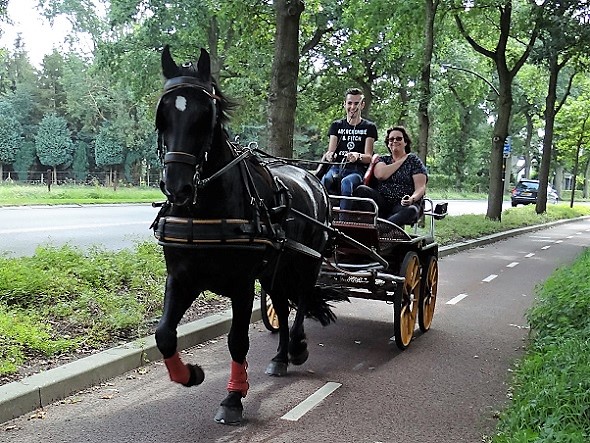 Beter zo’n peerdespul op het 2-baans fietspad dan op de grote weg. Je heb toch plenty ruimte?