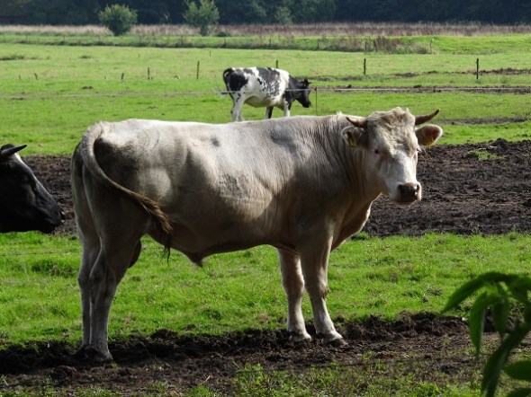 Hiervoor ben ik maar even de berm ingereden. Ze groetten hartelijk, maar ik  vrees dat mijn groet terug wat knorrig klonk, want eigenlijk vindt ik zo’n combinatie niet thuishoren op het fietspad (net zo min als 45 km/u autootjes, waarvan ik er gister een tegenkwam op het fietspad langs de Peizerweg):