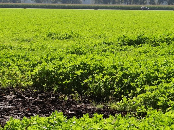 Tussen Bunne en Donderen – veld met bladrammenas als groenbemester: