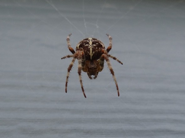 Kruisspin voor het raam van mijn fietsenschuurtje: