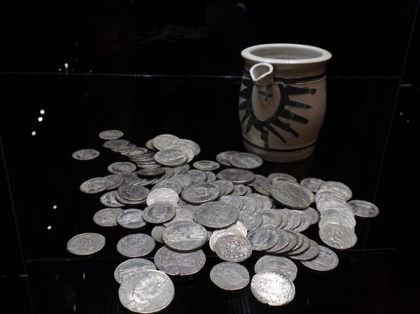 Archeologenballet bij de inrichting van de muntschattenexpositie: