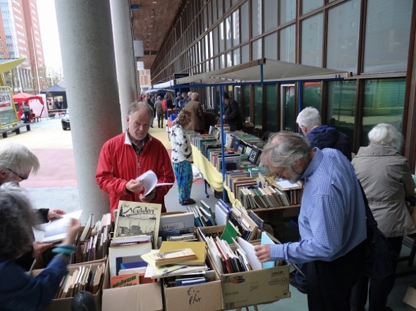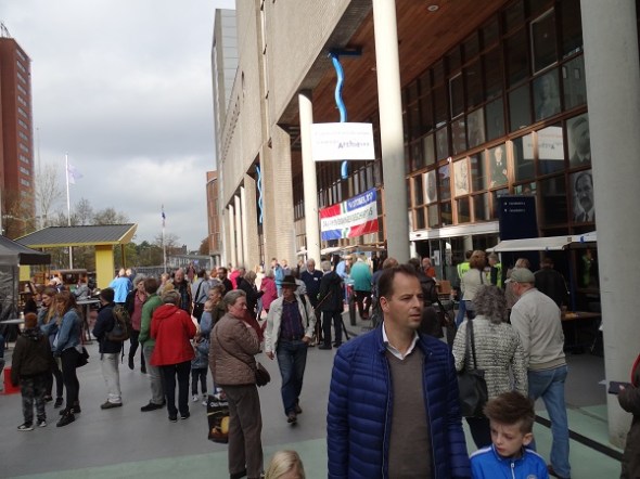 Na de lezingen: druk buiten met een sprank zonlicht.