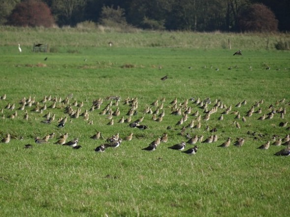 Boel kieviten, oud, maar vooral ook jong, op verzamelplek tussen Kleiwerd en Dorkwerd:
