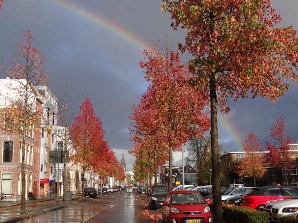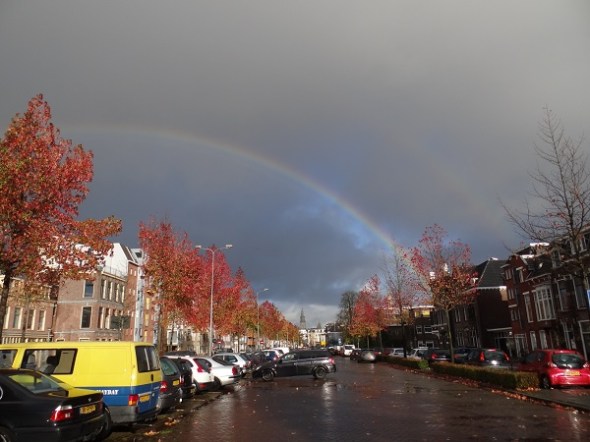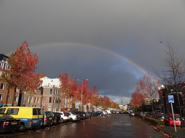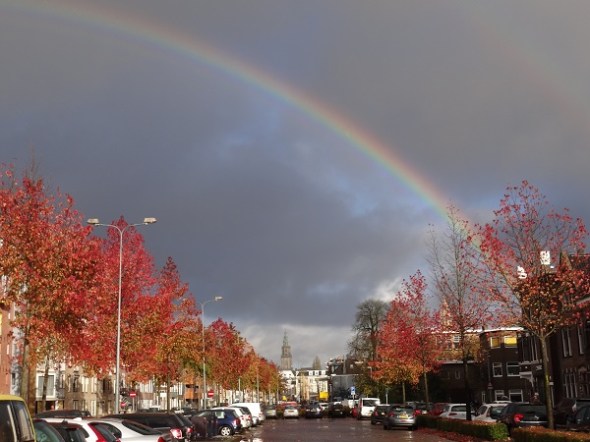 Dus weer even naar ‘Stad’ geweest. Prachtige foto serie. Je hebt wel een poosje rondgehangen, he? Die dubbele regenboog is echt wat. Jullie hebben hetzelfde weer als wij, zon aan een kant, zwarte luchten aan de andere, herfst kleuren in het midden. Om te genieten!