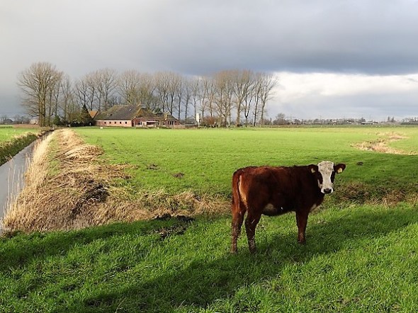 Ontsnapt blaarkopkalf snapt niet waar ik mij mee bemoei. Boer vroeg om assistentie bij het weer insluiten van het beest. Ja, men maakt wat mee in Leegkerk: