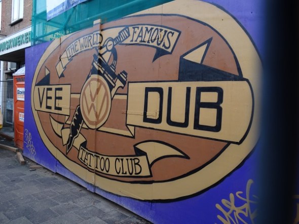 Reclame op bouwschutting nieuwe tattoozaak, Nieuwe Boteringestraat: