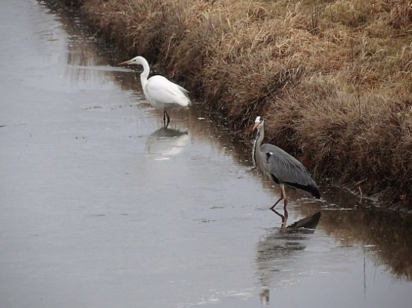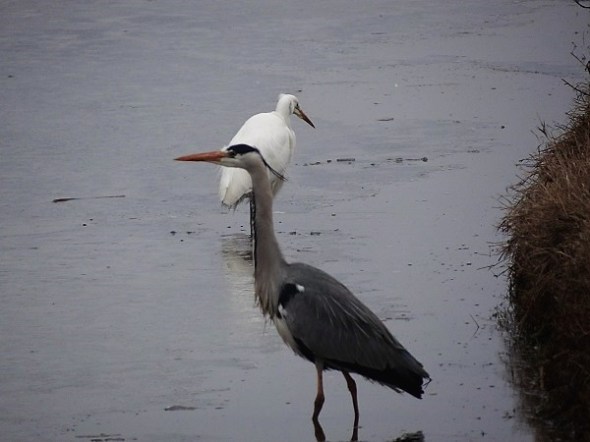 Kunnen een grijze en een witte reiger paren en wat wordt dan de kleur van de jongen? Ik zie ze al bezig met zaadmonsters, de wetenschappers, en broedmachines, want een ei van zo’n combinatie moet je natuurlijk goed in de gaten houden. Reina
