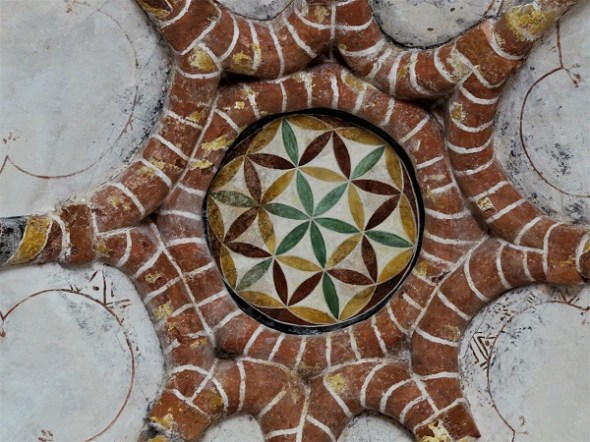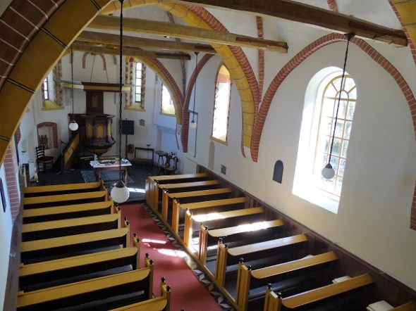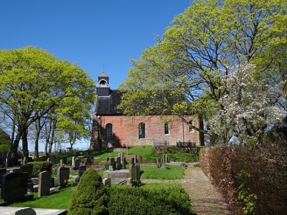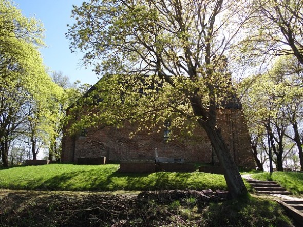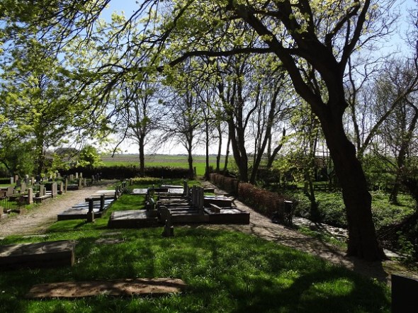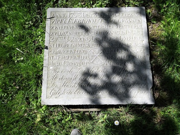 Op het achterliggende kerkhof. In het hoge deel, vooraan, liggen grafstenen uit de achttiende eeuw, waarvan ik vermoed dat die uit de kerk afkomstig zijn: