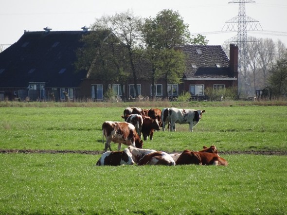 Hier en daar vee in de wei, zoals tussen Onderdendam en Winsum: