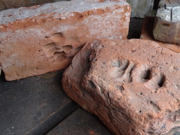 Ook hier – bakstenen met afdrukken van dierenpoten: