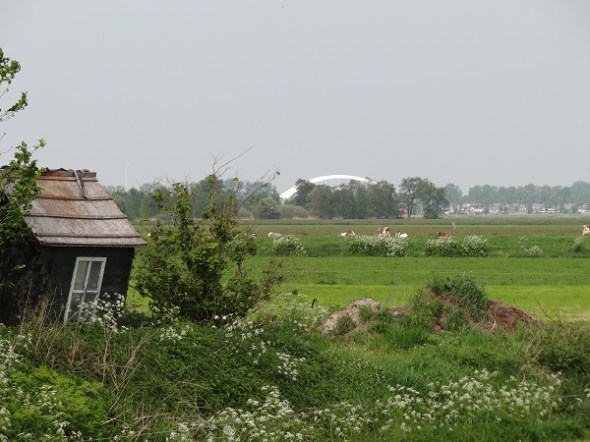 Gezicht vanaf Oosterzand op de weilanden richting Zuidhorn: