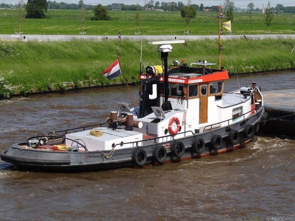 Sleepboot met duwbak in het Van Starkenborghkanaal bij Aduard: