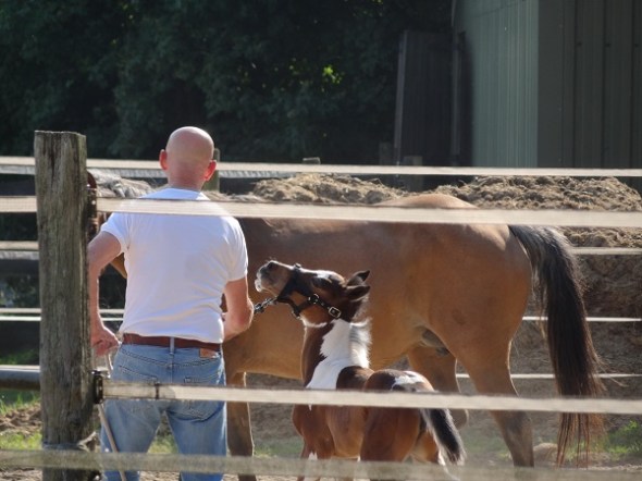 Dat veulen had mogelijk voor het eerst een halster om. Zijn baas pakte hem vrij stevig aan: