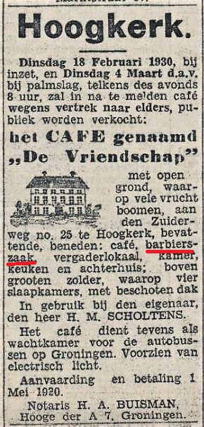 Deze advertentie uit het Nieuwsblad van het Noorden van 15 februari 1930 kwam vanavond voorbij in een causerie van Sieb Eldering voor de Historische Vereniging Hoogkerk: